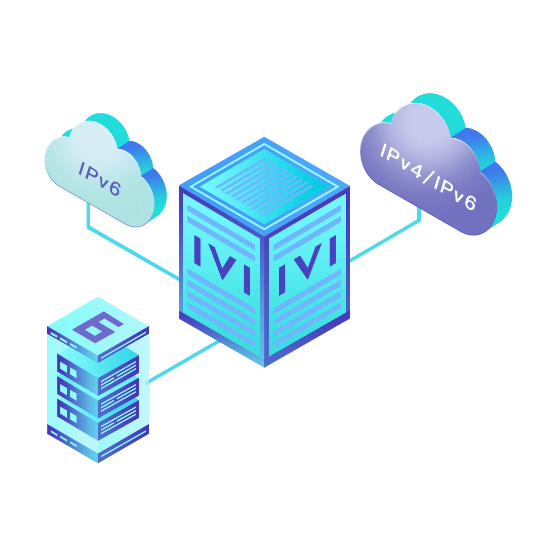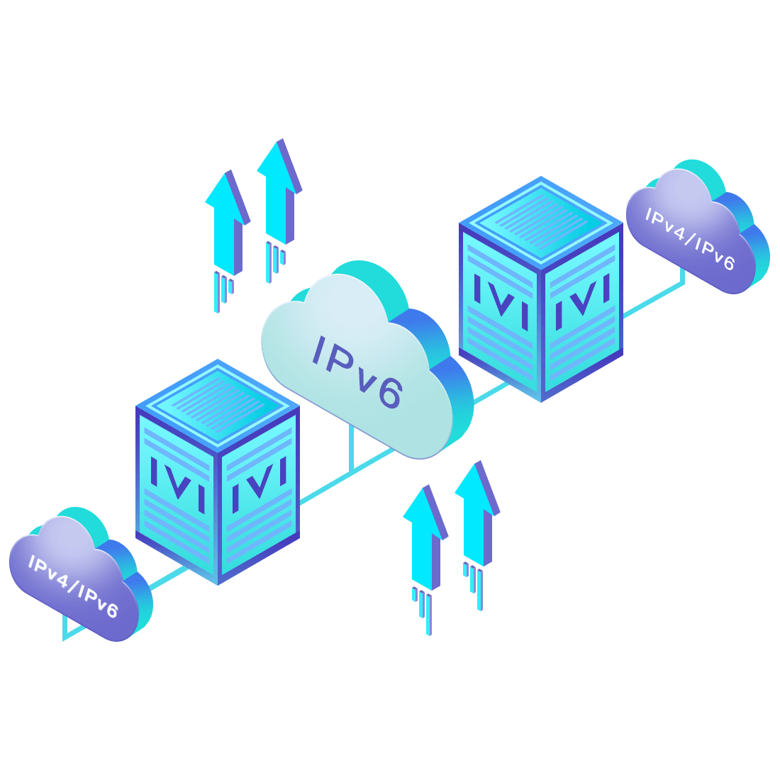 對正在進行IPv6整體升級規(guī)劃的運營商,應用IPv6升級方案2.5,通過IVI無狀態(tài)翻譯技術和純IPv6接入網絡,為雙棧客戶端和雙棧服務器提供連通服務。
